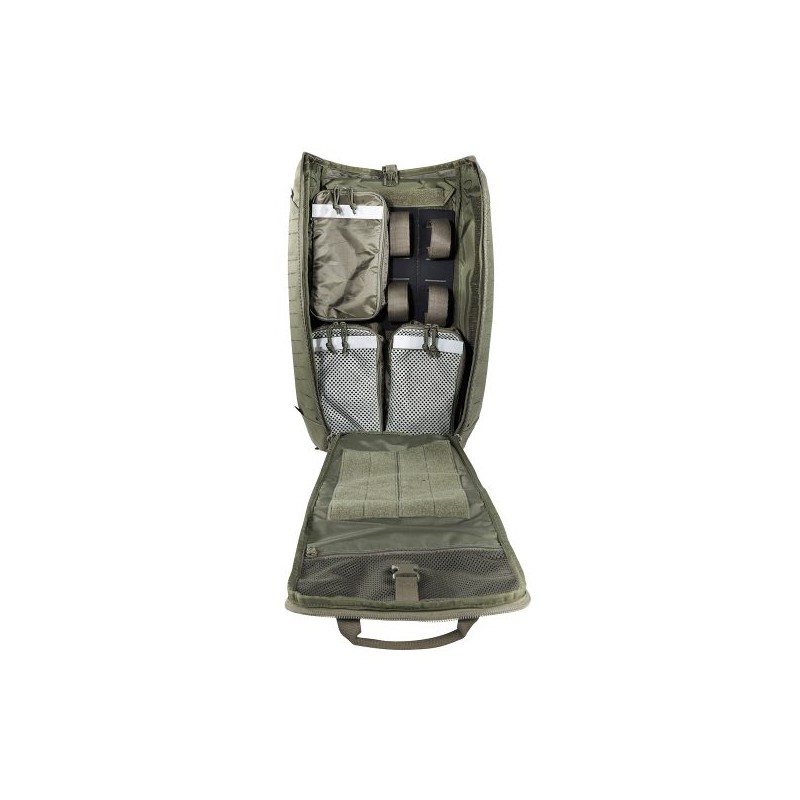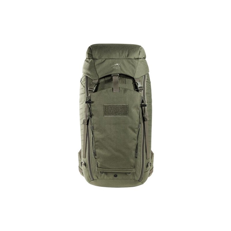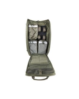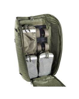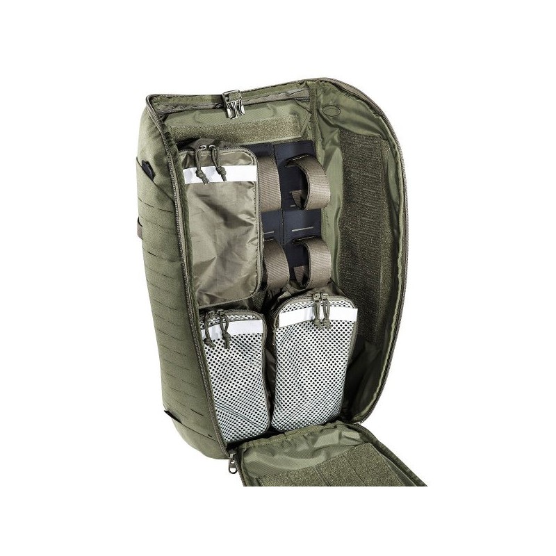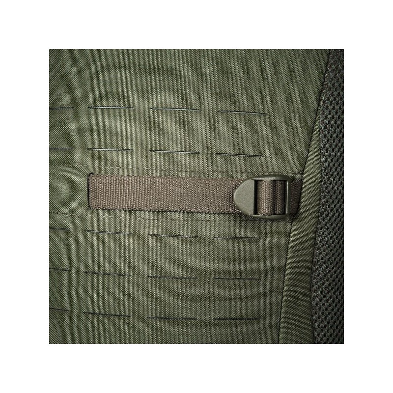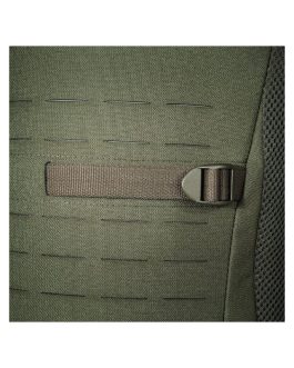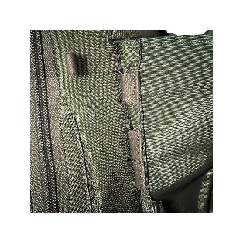 Modułowy plecak z regulowaną na wysokość i całkowicie zdejmowaną pokrywą górną. Laserowo wycinany MOLLE, na wszystkich istotnych powierzchniach plecaka. Z frontu wyjmowana kieszeń na hełm. Wnętrze z rozbudowanym panelem rzepowym dla indywidualnej konfiguracji (w zestawie 3 kieszenie na rzep oraz uchwyt na broń i akcesoria). Pas biodrowy zdejmowany (może być używany niezależnie jako Warrior Belt).